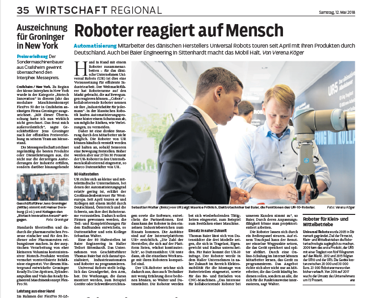 Mitarbeiter des dänischen Herstellers Universal Robots touren seit April mit Ihren Produkten durch Deutschland. Auch bei Baier Engineering macht das Mobil halt.