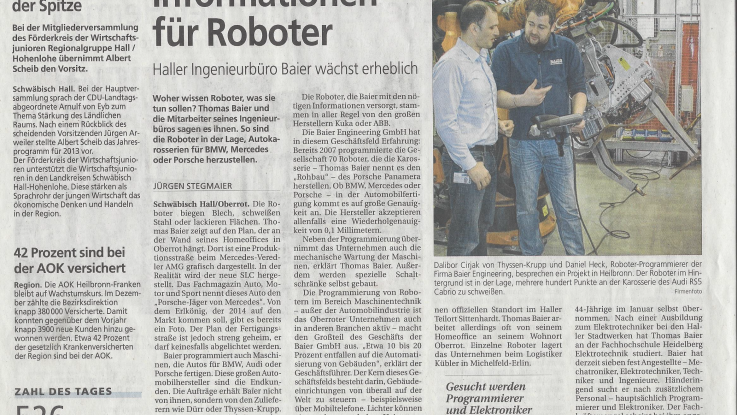 Presse Artikel über 20 Jahre Baier Engineering GmbH